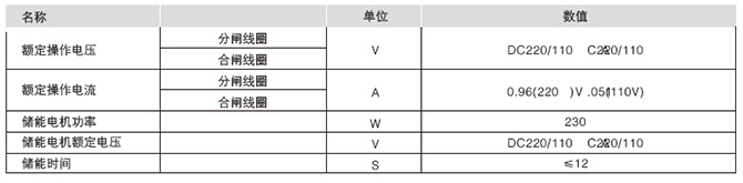 Spring operating machinery main technical parameters
